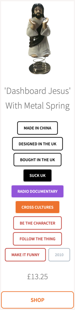 Main slideshow: Slide 1: Tuesday Shopping (https://flic.kr/p/7FeVGD) by Magnus D (CC BY 2.0). Modified July 2024 || Slide 2: Petrol pump nozzle (sourced in Nigeria) – Music Calligraphic 3D art Text Shopping Transparent Psd File (https://www.freepik.com/free-photo/music-calligraphic-3d-art-text-shopping-transparent-psd-file_20345539.htm#fromView=search&page=1&position=9&uuid=34c32d14-0333-4842-a824-61e6a89b2a9b) by Rochak Shukla (Freepik); Blue T-shirt (made in Bangladesh) – T shirt with blue color isolated on transparent background (https://www.freepik.com/free-psd/t-shirt-with-blue-color-isolated-transparent-background_126825710.htm#fromView=search&page=1&position=1&uuid=6c4709ad-0321-4c2b-ab9a-578c46bfe57c) by tohamina (Freepik); iPhone (made in China) – Apple iPhone SE (https://commons.wikimedia.org/wiki/File:Apple_iPhone_SE_02.jpg) by SimonWaldherr (CC BY-SA 4.0); Jar of cockles (picked in UK) – followthethings.com; Light bulb (Made in Bulgaria); A light bulb. Electric light bulb from Neolux (max. 230 V, 60 W, E27/ES, energy class E) in studio (https://commons.wikimedia.org/wiki/File:Gluehlampe_01_KMJ.jpg) by Edokter (CC BY-SA 3.0); Bananas (grown in Nicaragua) – Bananas (https://www.freepik.com/free-photo/bananas_1166270.htm#fromView=search&page=1&position=1&uuid=62483275-6f58-421b-bc92-c5f5d59401f2) by topntp26 (Freepik) || Slide 3: Cotton picking – Cotton picking in Uzbekistan (https://commons.wikimedia.org/wiki/File:Cotton_cultivation_in_Uzbekistan_01.jpg) by Bernard Gagnon (CC0 1.0); Mining – Miners at work on the flank of the “Cerro Rico”, Potosi, Bolivia. (https://commons.wikimedia.org/wiki/File:Miners_at_Work_Potosi_(pixinn.net).jpg) by Christophe Meneboeuf (CC BY-SA 2.5); Phone factory – El nuevo iPhone 7 ya ha comenzado su producción en Foxconn (https://flic.kr/p/GBXGY7) by iphone digital (CC BY-SA 2.0); Garment factory – Garment Factory Worker Bangaldesh (https://commons.wikimedia.org/wiki/File:Garment_Factory_Worker_Bengaldesh.jpg) by Solidarity Center (CC BY 2.0); Container port – Port of San Diego Working Waterfront (https://flic.kr/p/6DGLY5) by Port of San Diego (CC BY 2.0); Parcel delivery – Amazon Delivery – DSC04527_ep (https://flic.kr/p/2mfCdzx) by Eric Parker (CC BY-NC 2.0) Modified August 2024 || Slide 4 – Icon 1 ingredient: Game plan – Game Plan (https://thenounproject.com/icon/game-plan-1377634/) by Made by Made (CC BY 3.0) Modified August 2024; Open hand – pray (https://thenounproject.com/icon/pray-5622831/) by Muhammad Ikraam (CC BY 3.0) Modified August 2024; Icon 2 ingredients: iPad icon – iPad (https://thenounproject.com/icon/ipad-2693926/) by Jamie Ford (CC BY 3.0) Modified August 2024; Pointing finger icon – finger pointing (https://thenounproject.com/icon/finger-pointing-6367063/) by farra nugraha (CC BY 3.0) Modified August 2024; T-shirt icon – T-shirt (https://thenounproject.com/icon/tshirt-4464232/) by Cuputo (CC BY 3.0) Modified August 2024; Handcuffs icon – Handcuffs (https://thenounproject.com/icon/handcuffs-5048129/) by Amethyst Studio (CC BY 3.0) Modified August 2024; Icon 3 ingredients: Line of footsteps – footsteps (https://thenounproject.com/icon/footsteps-2402080/) by Ataur Rahman (CC BY 3.0) Modified August 2024; Magnifying glass – Magnifying Glass (https://thenounproject.com/icon/magnifying-glass-6484771/) by Candy Design (CC BY 3.0) Modified August 2024; Icon 4 ingredient: Solidarity – Solidarity (https://thenounproject.com/icon/solidarity-6258115/) by WBcreative (CC BY 3.0) Modified August 2024; Portrait – Sergei Tret’iakov: Сергей Михайлович Третьяков (https://commons.wikimedia.org/wiki/File:Sergey_Mikhailovich_Tretiakov.jpg) by anonymous (public domain).